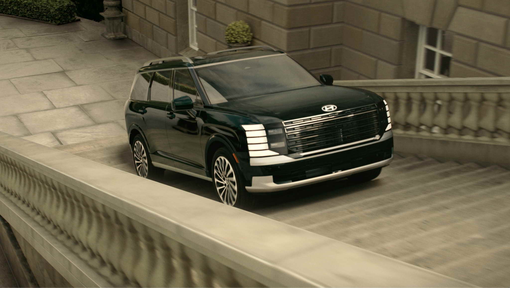 The ad features Parker Posey driving the Palisade Hybrid through various situations that are stereotypically depicted in car commercials including conquering absurd obstacles, going off road, driving a group of friends on a night out, automatically stopping for a road obstacle, taking the family on a camping trip and traveling with pets. Parker Posey comically shows how the Palisade can handle all of these situations and more. Through all of the situations, the ad highlights the premium design and roomy interior, advanced technology, and industry-leading safety features of the Palisade.