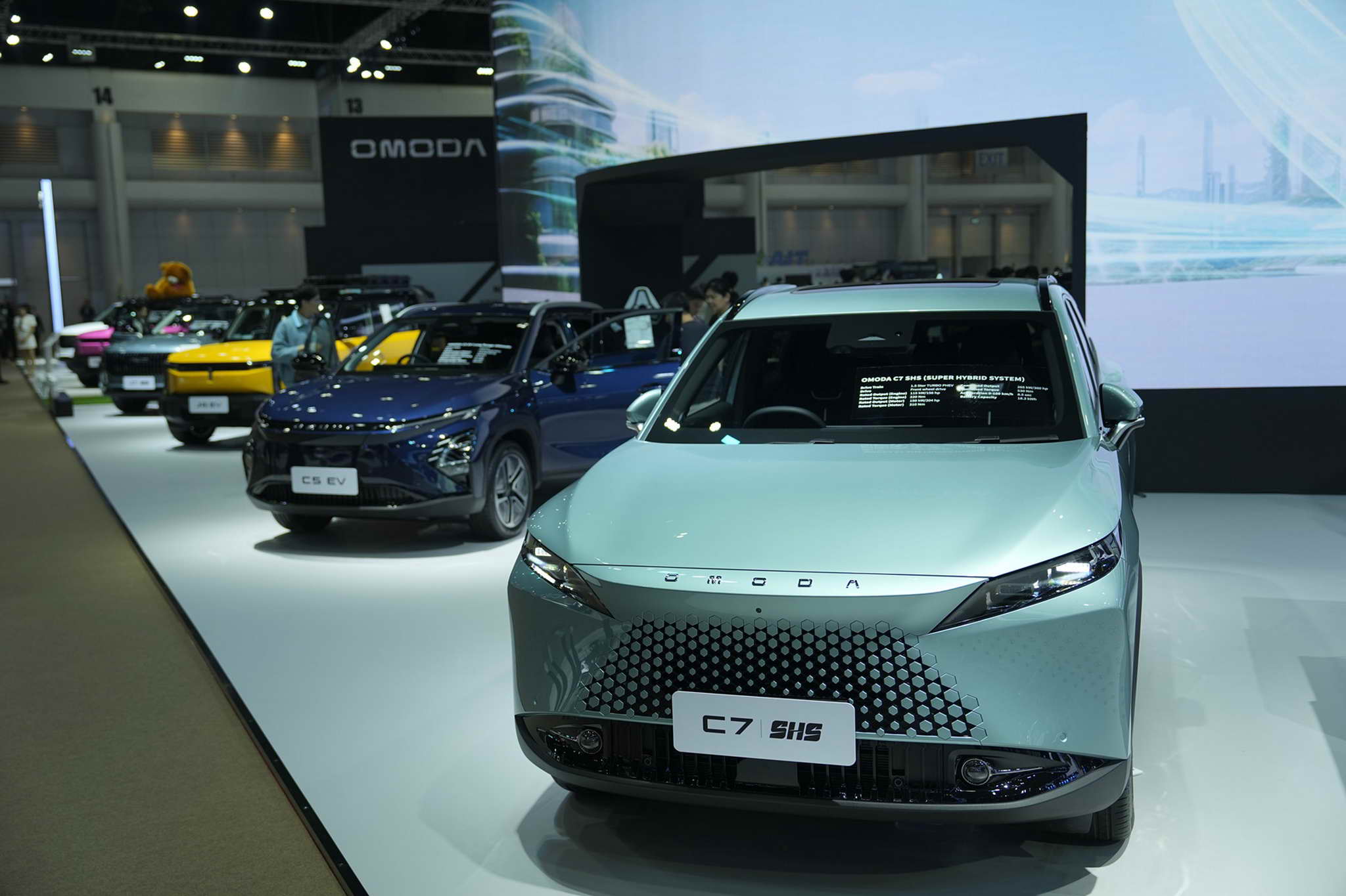 . (This specification is subject to change when imported into Thailand) Another model on display is the OMODA C7 SHS, designed under the concept of „Global Co-creation, Unlimited Enjoyment“ that will lead consumers to a new era of automotive design by