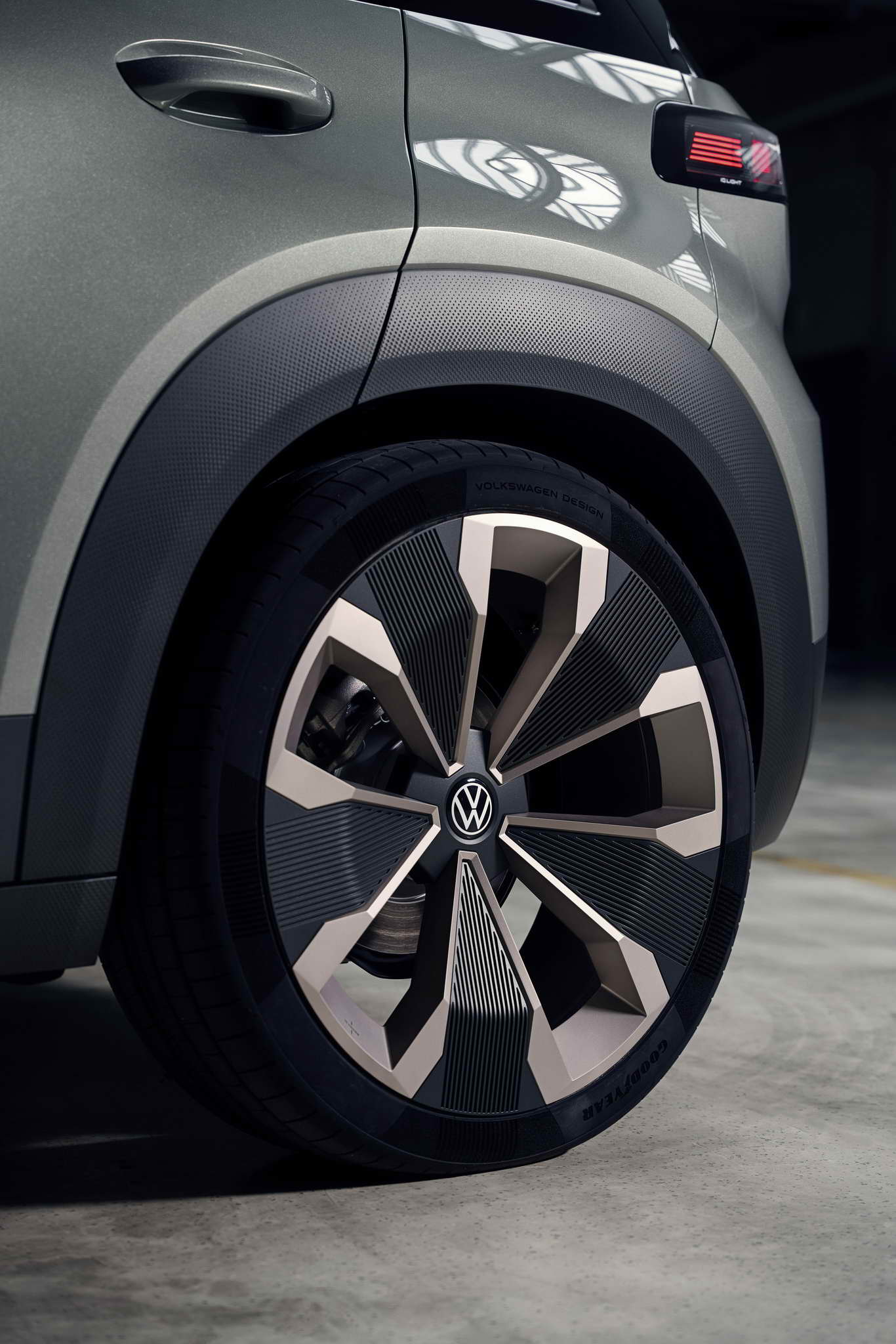 Compact – fits into any parking space. The SUV concept car on show at the IAA MOBILITIY is 4,161 mm long with a 2,601 mm wheelbase. The ID. CROSS Concept is 1,839mm wide and 1,588mm tall. This means that its size is similar to that of the current T-Cross. This does not, however, apply to the wheel/tyre combination on the concept car: The designers have developed a 21-inch alloy wheel specifically for the ID. CROSS Concept called Balboa. In cooperation with Goodyear, special 235/40 R21 tyres were designed for the show car, which continue the design of the rim in the tyre sidewall.