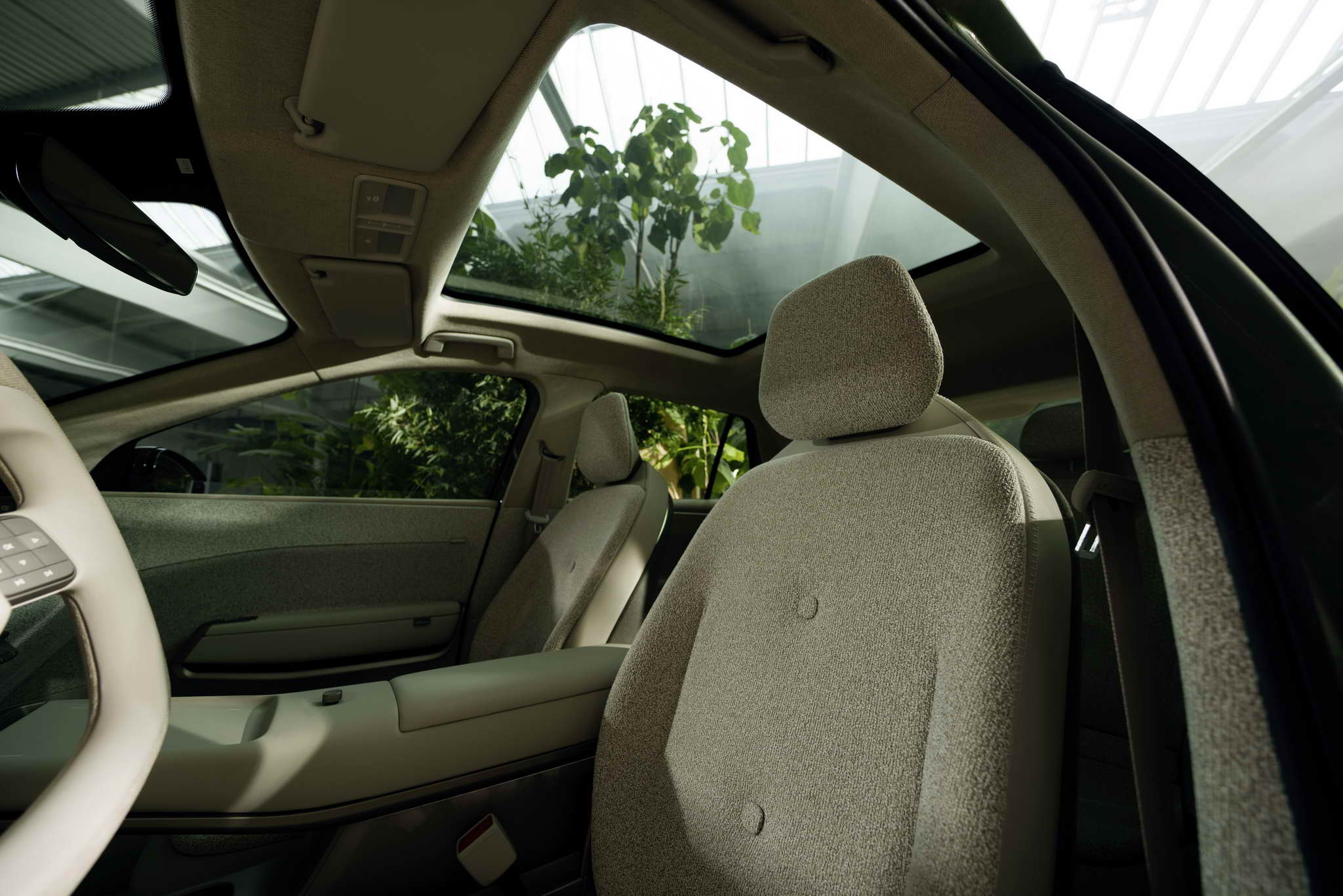 Plant motifs on the screens and real plants in the visually floating centre console enhance the feel-good effect. A further highlight is the specially designed seats in the concept car that can be folded down completely to create a reclining area in the style of a VW Bus.